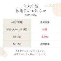 年末年始の営業について