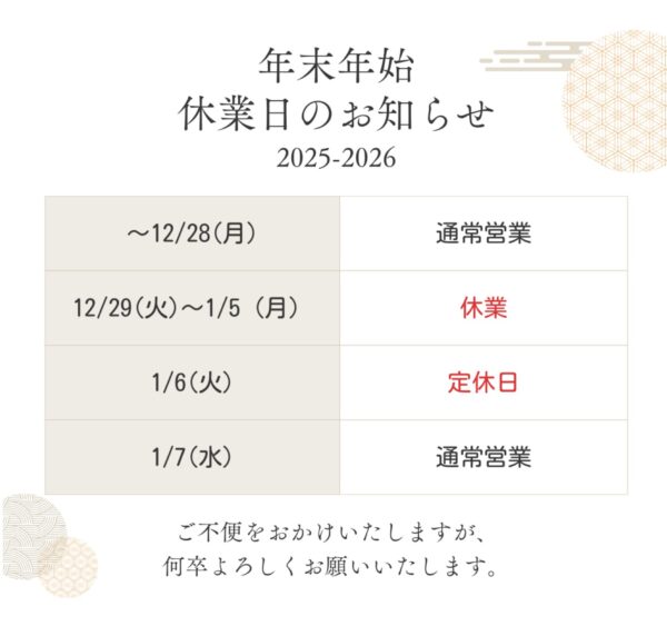 年末年始の営業について 2025.12.25 News 2025年もたくさんのご家族にご来店いただきまして、誠にありがとうございました。昨年末からスタートした新スタジオ[PET PORTRAIT@f]にもワンちゃんネコちゃんはもちろん、うさぎや鳥まで撮影にお越しいただきました […]